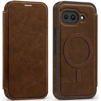 Phonesta Luxury Leather Book Wallet Case hoesje met MagSafe voor Google Pixel 9a - Donkerbruin