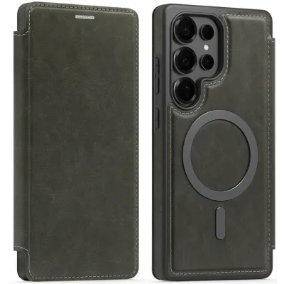 • Phonesta Luxury Leather Book Wallet Case hoesje met MagSafe voor Samsung Galaxy S25 Ultra - Grijs