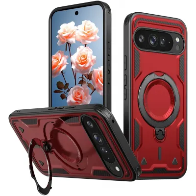TelefoonhoesjesGoogle hoesjesGoogle Pixel 9 Pro XL hoesjesPhonesta MagLock Armor Back Cover hoesje met ring en MagSafe voor Google Pixel 9 Pro XL - Rood