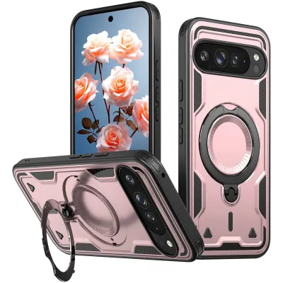 TelefoonhoesjesGoogle hoesjesGoogle Pixel 9 Pro XL hoesjesPhonesta MagLock Armor Back Cover hoesje met ring en MagSafe voor Google Pixel 9 Pro XL - Roségoud