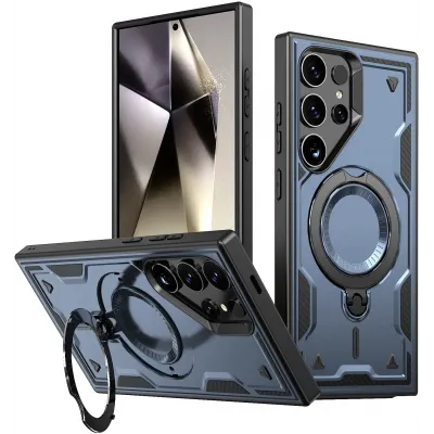 TelefoonhoesjesSamsung Galaxy hoesjesSamsung Galaxy S24 Ultra hoesjesPhonesta MagLock Armor Back Cover hoesje met ring en MagSafe voor Samsung Galaxy S24 Ultra - Donkerblauw