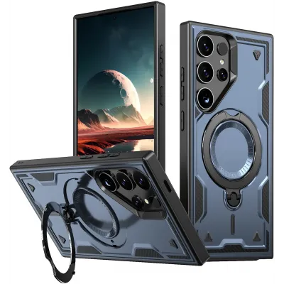 • Phonesta MagLock Armor Back Cover hoesje met ring en MagSafe voor Samsung Galaxy S25 Ultra - Donkerblauw