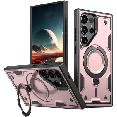 • Phonesta MagLock Armor Back Cover hoesje met ring en MagSafe voor Samsung Galaxy S25 Ultra - Roségoud