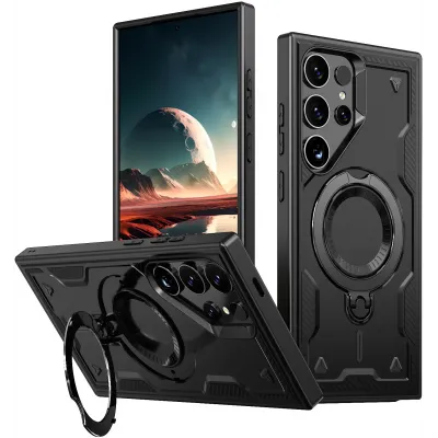 TelefoonhoesjesSamsung Galaxy hoesjesSamsung Galaxy S25 Ultra hoesjesPhonesta MagLock Armor Back Cover hoesje met ring en MagSafe voor Samsung Galaxy S25 Ultra - Zwart