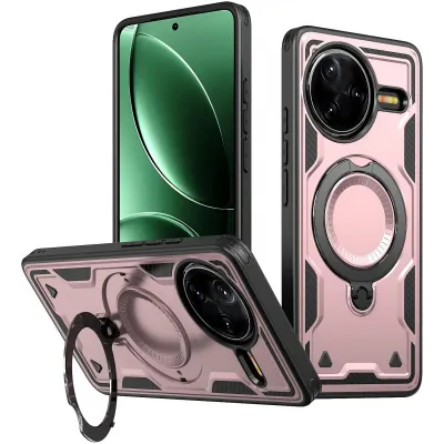TelefoonhoesjesXiaomi hoesjesXiaomi Poco F7 Ultra hoesjesPhonesta MagLock Armor Back Cover hoesje met ring en MagSafe voor Xiaomi Poco F7 Pro/F7 Ultra - Roségoud