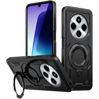 TelefoonhoesjesXiaomi hoesjesXiaomi Poco C75 hoesjesPhonesta MagLock Armor Back Cover hoesje met ring en MagSafe voor Xiaomi Redmi 14C / Xiaomi Poco C75 - Zwart