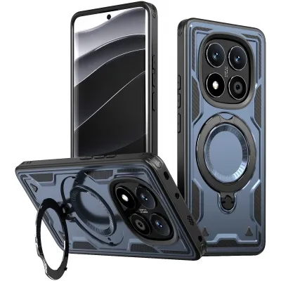 TelefoonhoesjesXiaomi hoesjesXiaomi Redmi Note 14 Pro Plus hoesjesPhonesta MagLock Armor Back Cover hoesje met ring en MagSafe voor Xiaomi Redmi Note 14 Pro 4G/5G/14 Pro Plus / Xiaomi Poco X7 - Donkerblauw
