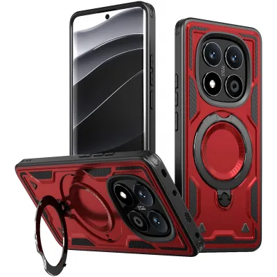 • Phonesta MagLock Armor Back Cover hoesje met ring en MagSafe voor Xiaomi Redmi Note 14 Pro 4G/5G/14 Pro Plus / Xiaomi Poco X7 - Rood