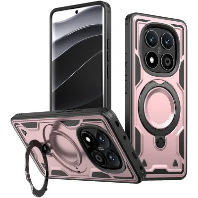 TelefoonhoesjesXiaomi hoesjesXiaomi Redmi Note 14 Pro Plus hoesjesPhonesta MagLock Armor Back Cover hoesje met ring en MagSafe voor Xiaomi Redmi Note 14 Pro 4G/5G/14 Pro Plus / Xiaomi Poco X7 - Roségoud