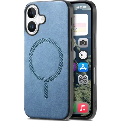 • Phonesta Retro Vegan Leather MagSafe Back Cover hoesje voor Apple iPhone 16 - Blauw
