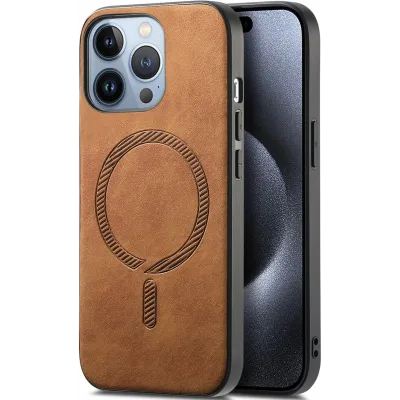 • Phonesta Retro Vegan Leather MagSafe Back Cover hoesje voor Apple iPhone 16 Pro - Bruin