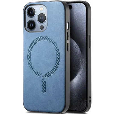 • Phonesta Retro Vegan Leather MagSafe Back Cover hoesje voor Apple iPhone 16 Pro Max - Blauw