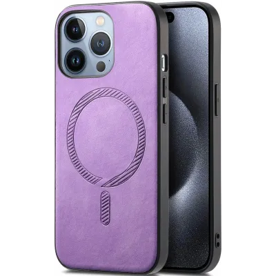 • Phonesta Retro Vegan Leather MagSafe Back Cover hoesje voor Apple iPhone 16 Pro - Paars