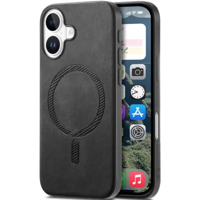 • Phonesta Retro Vegan Leather MagSafe Back Cover hoesje voor Apple iPhone 16 - Zwart