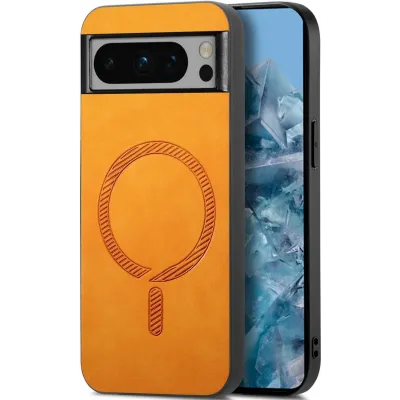 Phonesta Retro Vegan Leather MagSafe Back Cover hoesje voor Google Pixel 9 Pro XL - Oranje