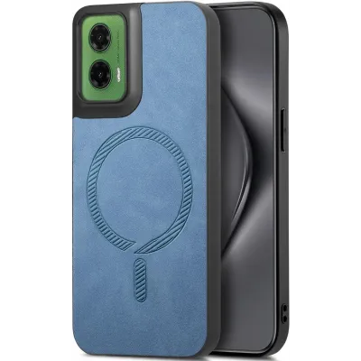 Phonesta Retro Vegan Leather MagSafe Back Cover hoesje voor Motorola Moto G35 - Blauw