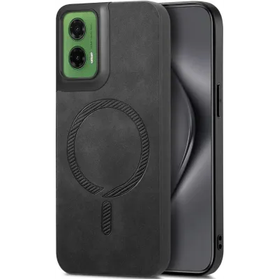 Phonesta Retro Vegan Leather MagSafe Back Cover hoesje voor Motorola Moto G35 - Zwart