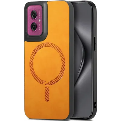 Phonesta Retro Vegan Leather MagSafe Back Cover hoesje voor Motorola Moto G55 - Oranje