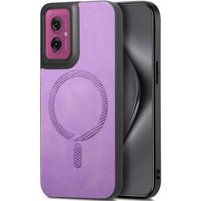 Phonesta Retro Vegan Leather MagSafe Back Cover hoesje voor Motorola Moto G55 - Paars