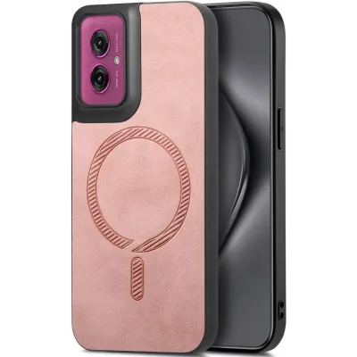 Phonesta Retro Vegan Leather MagSafe Back Cover hoesje voor Motorola Moto G55 - Roze