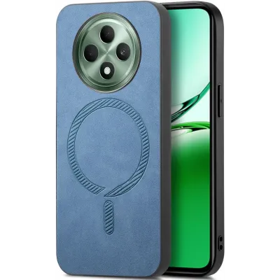 • Phonesta Retro Vegan Leather MagSafe Back Cover hoesje voor Oppo Reno12 F/Reno12 FS - Blauw
