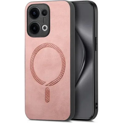 Phonesta Retro Vegan Leather MagSafe Back Cover hoesje voor Oppo Reno13 - Roze