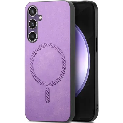 Phonesta Retro Vegan Leather MagSafe Back Cover hoesje voor Samsung Galaxy S24 FE - Paars