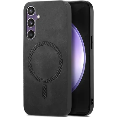 Phonesta Retro Vegan Leather MagSafe Back Cover hoesje voor Samsung Galaxy S24 FE - Zwart