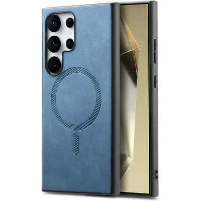 • Phonesta Retro Vegan Leather MagSafe Back Cover hoesje voor Samsung Galaxy S25 Ultra - Blauw