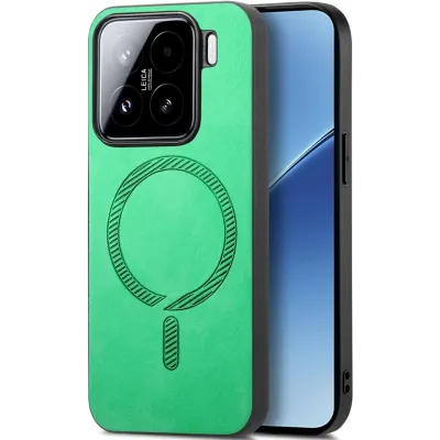 TelefoonhoesjesXiaomi hoesjesXiaomi 15 hoesjesPhonesta Retro Vegan Leather MagSafe Back Cover hoesje voor Xiaomi 15 - Groen