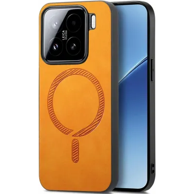 TelefoonhoesjesXiaomi hoesjesXiaomi 15 hoesjesPhonesta Retro Vegan Leather MagSafe Back Cover hoesje voor Xiaomi 15 - Oranje