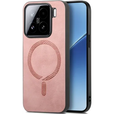 TelefoonhoesjesXiaomi hoesjesXiaomi 15 hoesjesPhonesta Retro Vegan Leather MagSafe Back Cover hoesje voor Xiaomi 15 - Roze