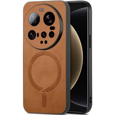 Phonesta Retro Vegan Leather MagSafe Back Cover hoesje voor Xiaomi 15 Ultra - Bruin