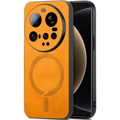 TelefoonhoesjesXiaomi hoesjesXiaomi 15 Ultra hoesjesPhonesta Retro Vegan Leather MagSafe Back Cover hoesje voor Xiaomi 15 Ultra - Oranje