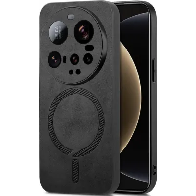 TelefoonhoesjesXiaomi hoesjesXiaomi 15 Ultra hoesjesPhonesta Retro Vegan Leather MagSafe Back Cover hoesje voor Xiaomi 15 Ultra - Zwart