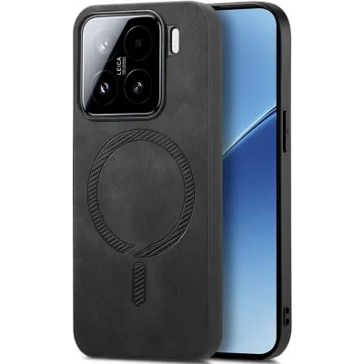 TelefoonhoesjesXiaomi hoesjesXiaomi 15 hoesjesPhonesta Retro Vegan Leather MagSafe Back Cover hoesje voor Xiaomi 15 - Zwart
