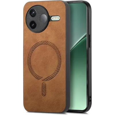 TelefoonhoesjesXiaomi hoesjesXiaomi Poco F7 Pro hoesjesPhonesta Retro Vegan Leather MagSafe Back Cover hoesje voor Xiaomi Poco F7 Pro - Bruin