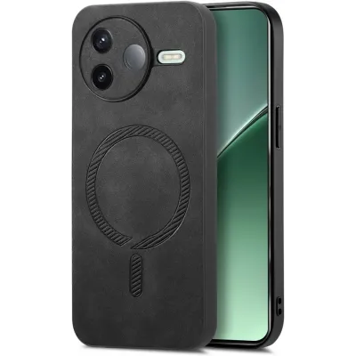 Phonesta Retro Vegan Leather MagSafe Back Cover hoesje voor Xiaomi Poco F7 Pro - Zwart