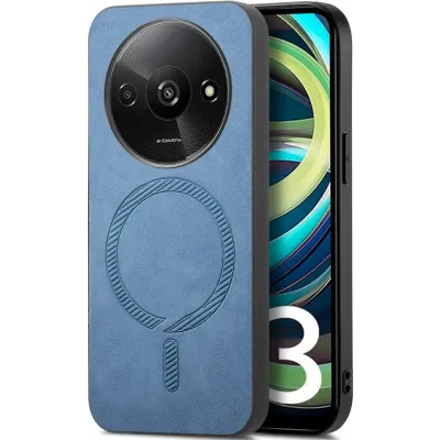 TelefoonhoesjesXiaomi hoesjesXiaomi Redmi A3 hoesjesPhonesta Retro Vegan Leather MagSafe Back Cover hoesje voor Xiaomi Redmi A3 - Blauw