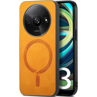 TelefoonhoesjesXiaomi hoesjesXiaomi Redmi A3 hoesjesPhonesta Retro Vegan Leather MagSafe Back Cover hoesje voor Xiaomi Redmi A3 - Oranje