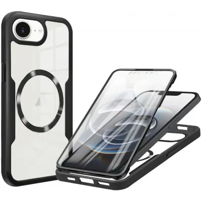 • Phonesta Slim Protect 360 hoesje met Screenprotector en MagSafe voor Apple iPhone 17e/16e - Zwart