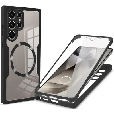 • Phonesta Slim Protect 360 hoesje met Screenprotector en MagSafe voor Samsung Galaxy S24 Ultra - Zwart