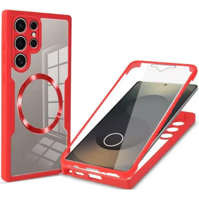 • Phonesta Slim Protect 360 hoesje met Screenprotector en MagSafe voor Samsung Galaxy S25 Ultra - Rood