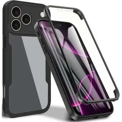• Phonesta Slim Protect 360 hoesje met Screenprotector voor Apple iPhone 17 Pro - Zwart