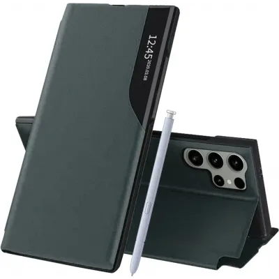 • Phonesta Smart Side View Book Case hoesje voor Samsung Galaxy S25 Ultra - Groen