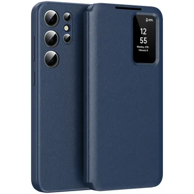 • Phonesta Smart Window Book Wallet Case hoesje voor Samsung Galaxy S24 Ultra - Donkerblauw