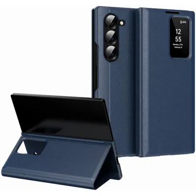 TelefoonhoesjesSamsung Galaxy hoesjesSamsung Galaxy Z Fold 6 hoesjesPhonesta Smart Window Book Wallet Case hoesje voor Samsung Galaxy Z Fold 6 - Donkerblauw
