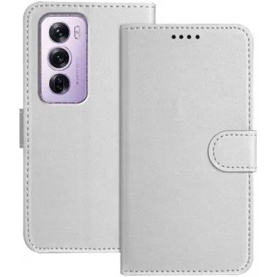 Phonesta Smooth Skin Book Wallet Case hoesje voor Oppo Reno12 Pro - Zilver