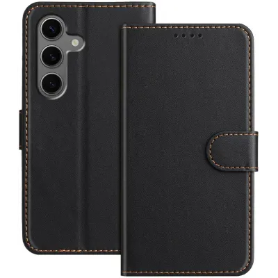 Phonesta Leather Vertical Flip Wallet Case hoesje voor Samsung Galaxy S25 Plus/S24 Plus - Zwart