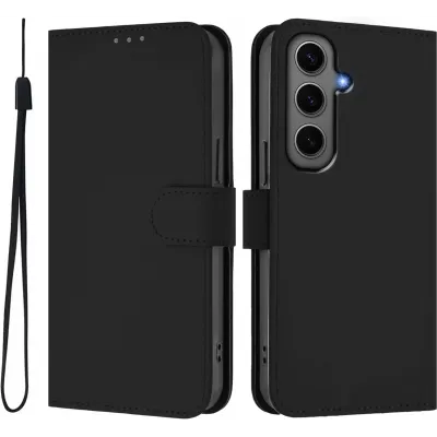 Phonesta Leather Vertical Flip Wallet Case hoesje voor Samsung Galaxy S25 Plus/S24 Plus - Zwart